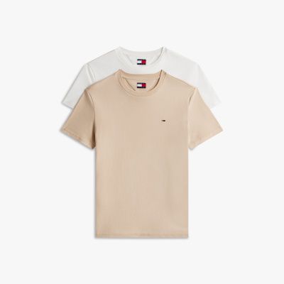 Le due T-shirt in jersey di puro cotone sono caratterizzate dal taglio aderente, per definire con elegante semplicità la tua figura.