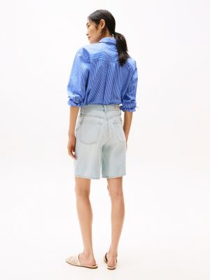 I bermuda relaxed fit con vita alta, realizzati in misto cotone, aggiungono ai tuoi outfit un tocco casual e femminile.