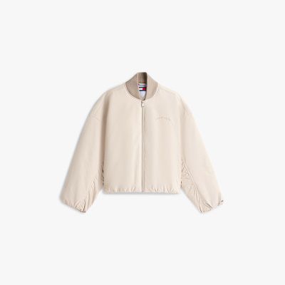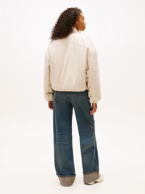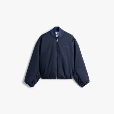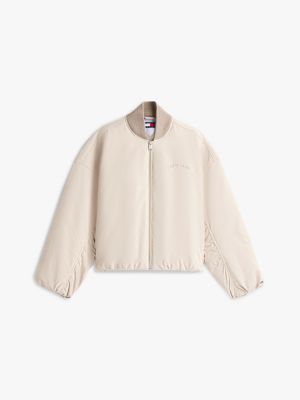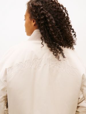 Il bomber imbottito con spalle scese è decorato dai ricami tono su tono sul petto e sul retro, per aggiungere un tocco di stile college ai tuoi outfit.