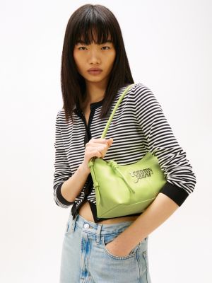 La borsa a spalla, dallo stile moderno e accattivante, si distingue per il design essenziale e l'iconico logo in metallo sul davanti.