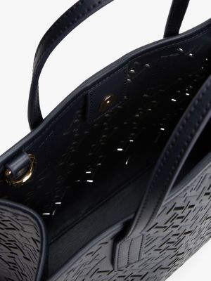 La versatile borsa tote è impreziosita dall'intricato motivo con monogrammi TH traforati e dai dettagli in metallo dorato, per uno stile decisamente sofisticato.