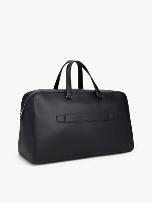 Il borsone combina praticità e raffinatezza, grazie alla finitura con motivo intrecciato e al luccicante logo in metallo.