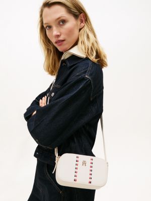 La camera bag, dotata del doppio scomparto, unisce il design tradizionale agli originali dettagli in metallo lucido e al nastro iconico sul davanti.