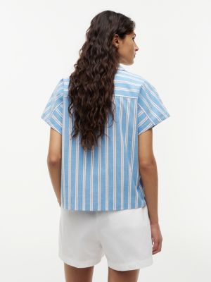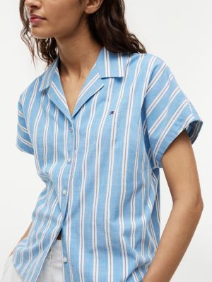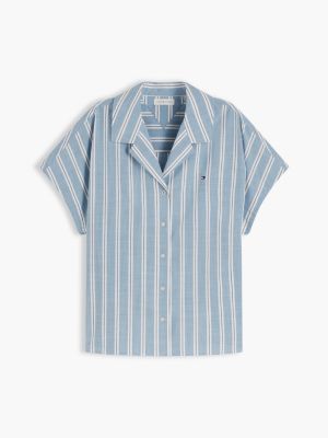 Sfoggia un look rilassato con la camicia a maniche corte, dalle spalle morbide e il colletto cubano che ne esaltano lo stile disinvolto.