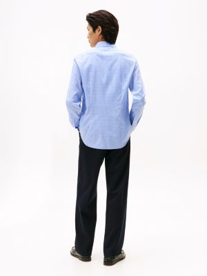 La camicia slim fit, in cotone dobby e decorata dal micromotivo a quadri, ti assicurerà un comfort eccezionale grazie al tessuto stretch.