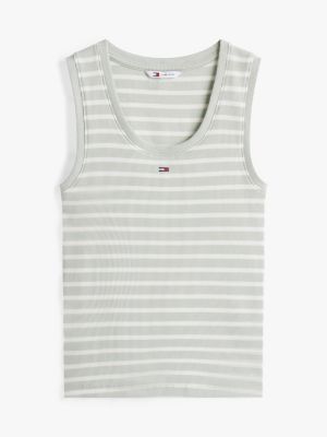 La canotta in cotone stretch a coste, dalla vestibilità aderente, dona una nota di texture ai tuoi look a strati.