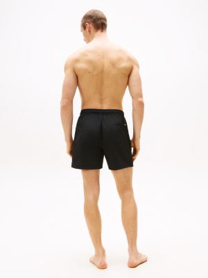 Il classico costume shorts di media lunghezza, completo di comodi lacci in vita e tasca sul retro, è il capo ideale per un look intramontabile a bordo piscina.