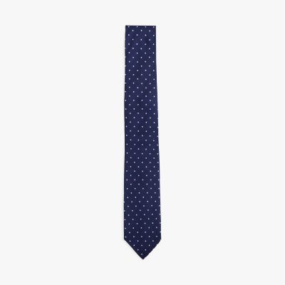La cravatta in pura seta, impreziosita dal motivo intessuto a pois all over, aggiunge una nota raffinata ai tuoi look eleganti.