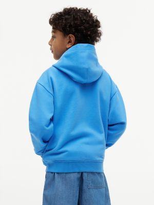 La felpa con cappuccio in spugna di puro cotone, dotata di zip integrale e comoda tasca a marsupio divisa, è il capo ideale da indossare nelle giornate più fresche.