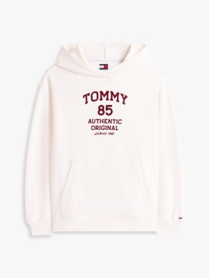 La felpa con cappuccio, caratterizzata dalla comoda vestibilità oversize, sfoggia un irresistibile stile college grazie alla tasca a marsupio e al logo floccato sul petto.