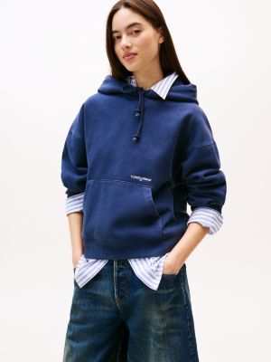 Felpa squadrata washed con logo ricamato
