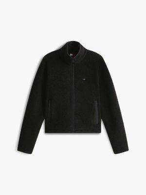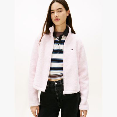 La morbida giacca in sherpa con zip integrale e collo a imbuto è perfetta per proteggerti dal freddo, oltre a essere arricchita dall'iconica bandierina ricamata sul davanti.
