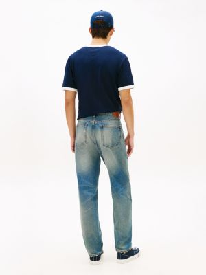 I jeans affusolati con dettagli distressed, completati da baffature e scoloriture davanti e dietro, sono un inno allo stile vintage di ispirazione americana.