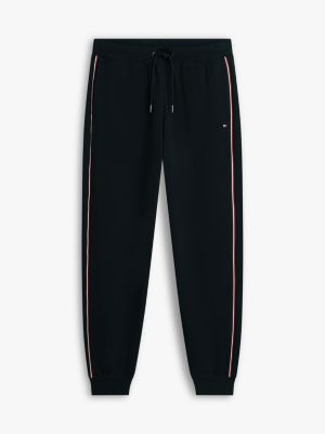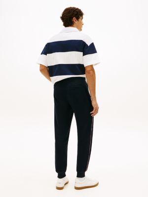 I joggers in spugna di puro cotone, con comoda fascia elastica alla caviglia, si distinguono per l'iconico motivo a righe global d'ispirazione athleisure.