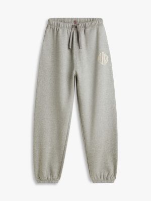 I joggers in felpa con logo ricamato stile college, rifiniti dalla fascia elastica in vita e alle caviglie, sono perfetti per i momenti di relax.