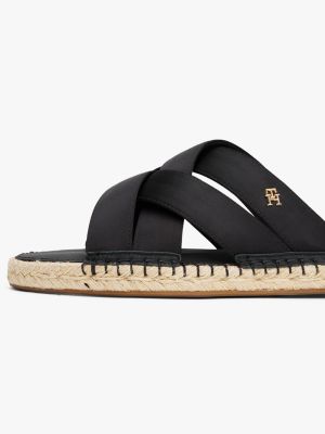 Le mule senza allacciatura reinterpretano in chiave sofisticata le classiche espadrillas, grazie alle fascette incrociate con effetto satinato.