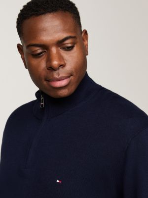L'intramontabile pullover con mezza zip, realizzato in un filato bicolore di cotone pima e cashmere, aggiunge un tocco distintivo al guardaroba classico.