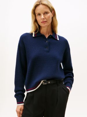 Pullover polo relaxed fit con cashmere