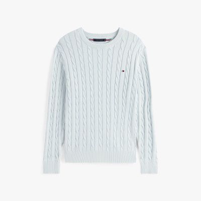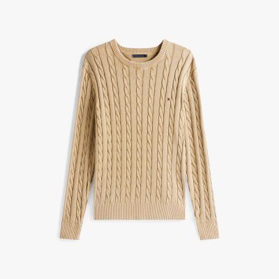 Il classico pullover in maglia intrecciata, con l'iconica bandierina ricamata sul petto, è tinto in capo per un esclusivo effetto vissuto.