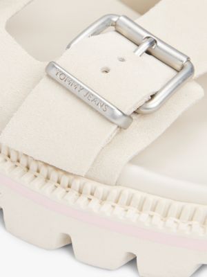 I sandali con doppio cinturino, realizzati in morbido camoscio e dotati di una spessa suola carrarmato, sono perfetti per le tue avventure estive.