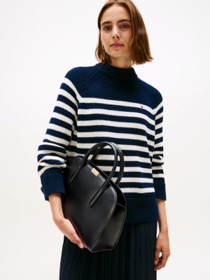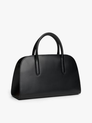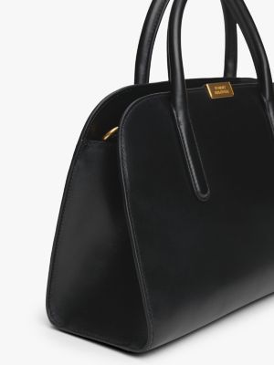 La capiente satchel in pelle con iconica chiusura, da portare a mano o con la pratica tracolla, è perfetta per l'ufficio.