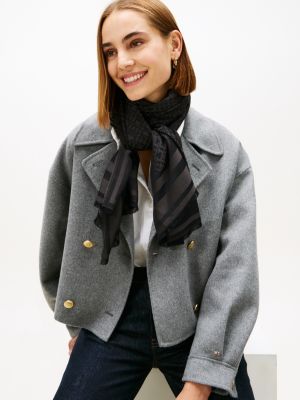 Avvolgiti nella morbida sciarpa, arricchita dalla trama in jacquard con monogrammi TH all over, per regalarti ogni giorno un tocco di stile.