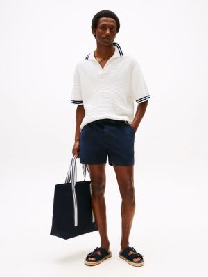 Gli shorts in cotone stretch, dotati di comodo elastico in vita con lacci, si candidano a nuovo modello preferito per le giornate più calde.