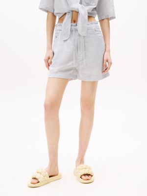Per le giornate in spiaggia scegli lo stile disinvolto degli shorts con vita a sacchetto, dotati di lacci per regolare la vestibilità.