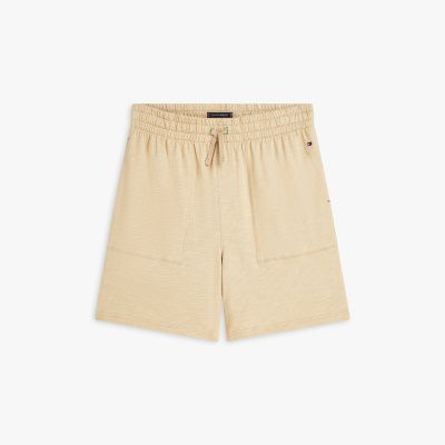 I comodi shorts del pigiama, realizzati in jersey fiammato di puro cotone e completati dall'elastico con lacci in vita, sono ideali anche per il relax quotidiano.