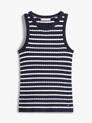 Lo smanicato slim fit è realizzato in sottile maglia di puro cotone dall'intramontabile lavorazione intrecciata, per uno stile di ispirazione college.
