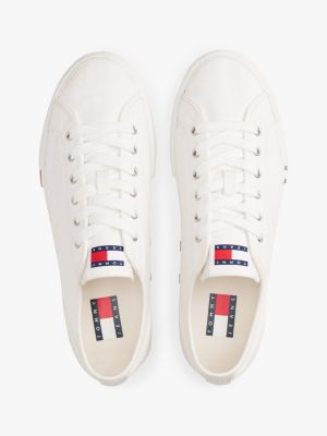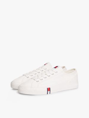 Aggiungi un tocco di fascino rétro ai tuoi look di tutti i giorni grazie alle sneakers basse in tela di puro cotone, ornate dall'esclusiva bandierina.