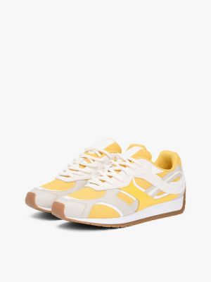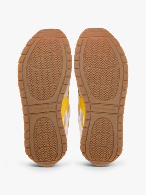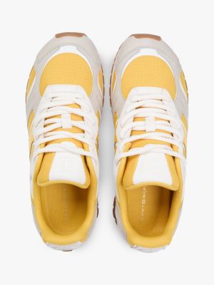 Le sneakers in pelle d'ispirazione rétro catturano l'attenzione grazie al design con mix di texture a contrasto, completato dai grintosi lacci in corda.