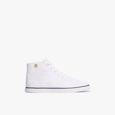 Le sneakers in tela di puro cotone, arricchite dai lucenti dettagli iconici, richiamano le classiche scarpe da tennis e le versioni per il tempo libero.
