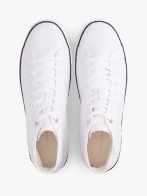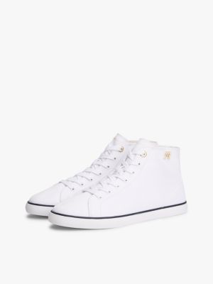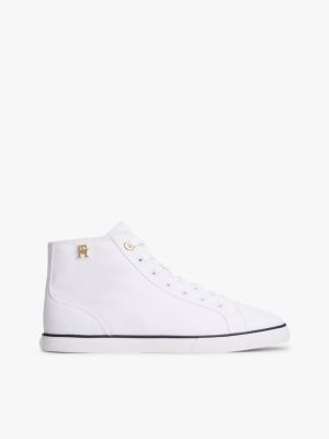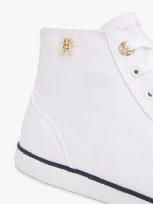 Le sneakers in tela di puro cotone, arricchite dai lucenti dettagli iconici, richiamano le classiche scarpe da tennis e le versioni per il tempo libero.