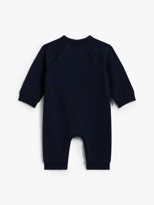 La graziosa tutina in spugna di cotone stretch, con dettagli ispirati alle felpe e pratiche chiusure con bottoni automatici, è il massimo del comfort.