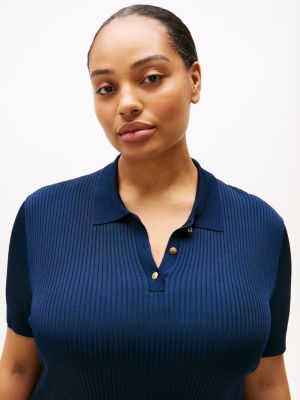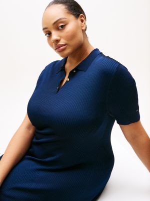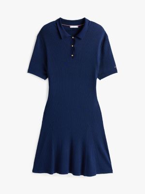 Il vestito slim fit a maniche corte, con l'elegante colletto a polo e la texture a coste, è un vero classico di stagione.