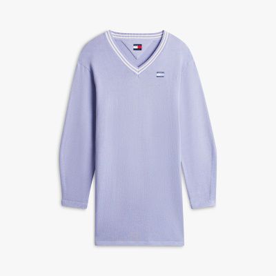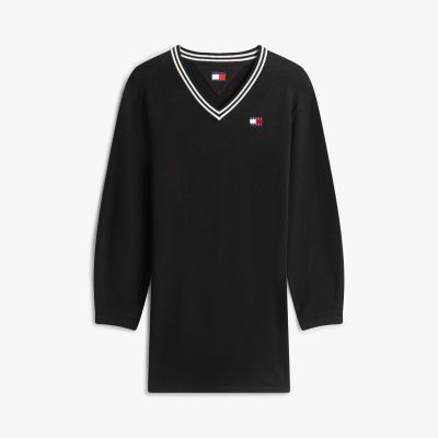 Il comodo vestito pullover relaxed fit in puro cotone, dal taglio corto, è impreziosito dal distintivo Tommy e dalla scollatura a righe in stile college.